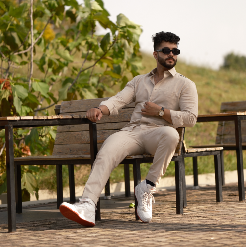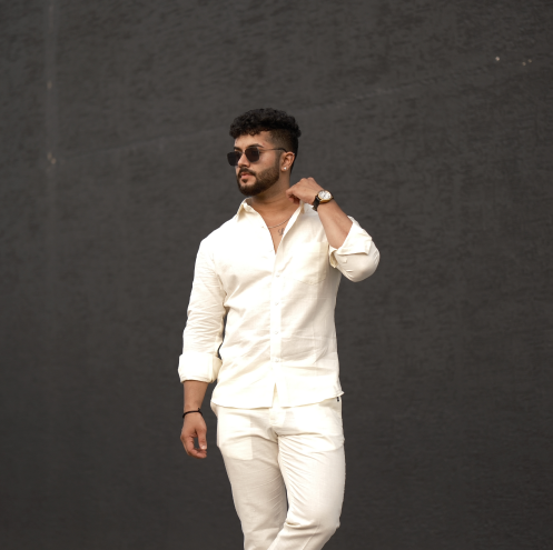 Cream - Cotton Linen Co-ord Set - Full Shirt Full Pant