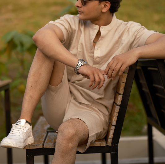 Natural - Cotton Linen Co-ord Set - Half Pant Half Shirt