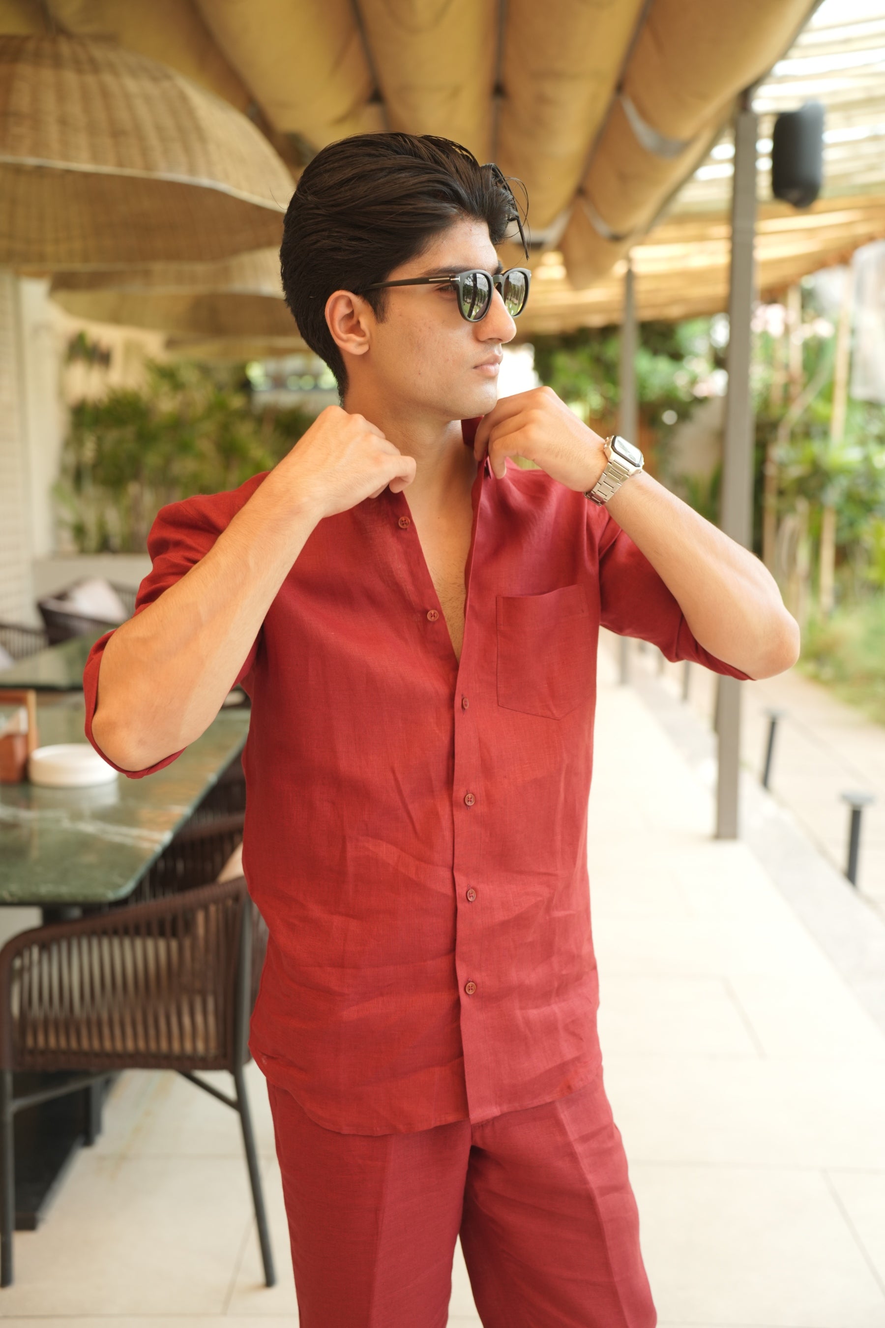 Tailored from 60 Lea pure linen, the Matt Mehroon color radiates richness and sophistication. Whether for parties, festive gatherings, smart office wear, or weekend outings, this set strikes the perfect balance between elegance and comfort.